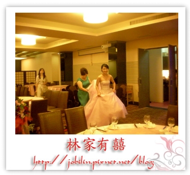 到了新娘休息室之後...攝影師請二姐站定位給我們拍照...