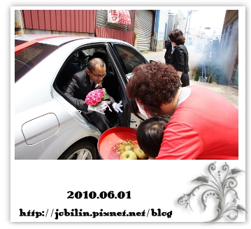 新娘車到達了...可是要先繞一圈...因為習俗說新娘車是不可以"倒退嚕"的...