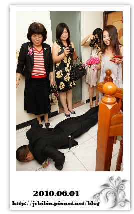 順利來到家門口...結果伴娘說新娘沒聽見...於是姊夫只好又在家門口大喊一次!