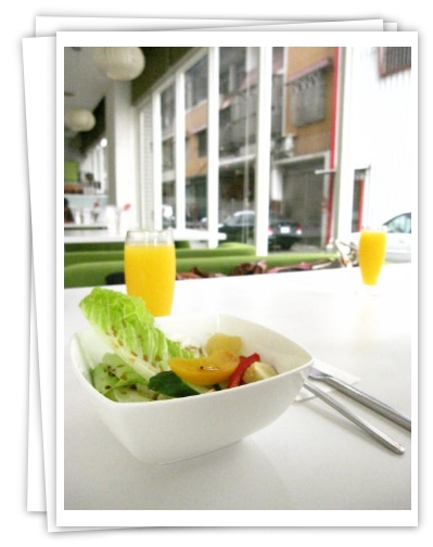 早餐沙拉配現榨柳橙汁...好吃又好喝...但沙拉份量有點大...!!